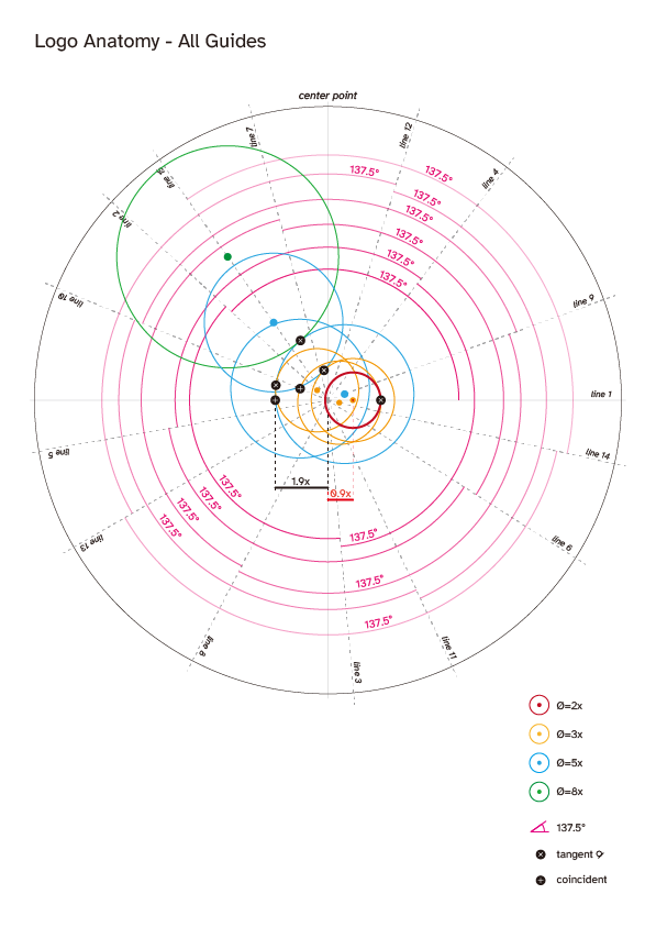 - ロゴのジオメトリは一連の円によって構成されています。